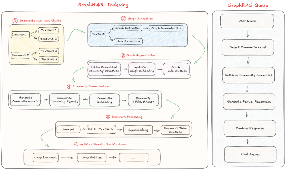 Microsoft GraphRAG | 一个能够将知识图谱和 RAG 结合起来的数据工作流和转换工具,可以提供数据处理,检索问答能力 | GitHub | 论文 |